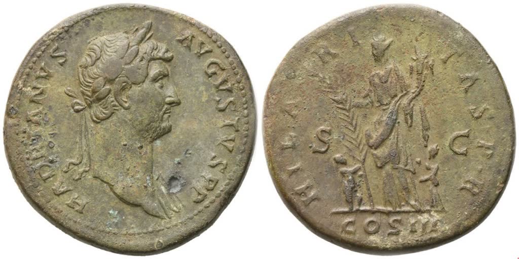 Hadrian (117-138), Sestertius, Rome, 128-129; Æ (26,98 g; 33,6 mm; 6 h)