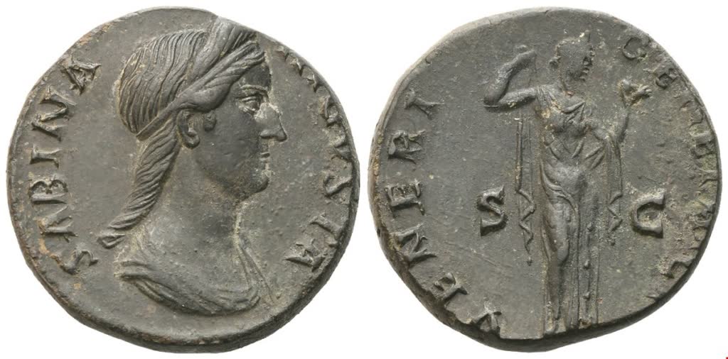 Sabina, Dupondius or As struck under Hadrian, 128-136/7; Æ (10,97 g; 23,4 mm; 6 h)
