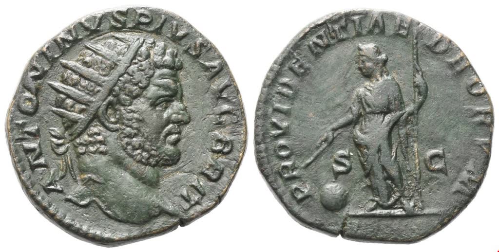 ANTONINVS PIVS AVG BRIT Radiate head r.; Rv. PROVIDENTIAE DEORVM / S – C, Providentia standing l., holding rod and sceptre, globe at feet. RIC 514; Cohen 534. Dark green patina. Extremely fine / about extremely fine.