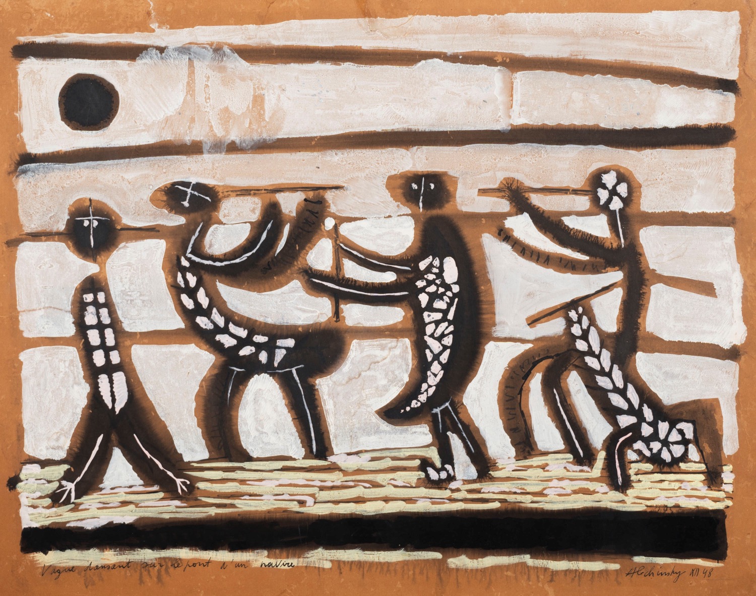 Pierre Alechinsky (Bruxelles 1927) - Vague dansant sur le pont d'un navire, 1948