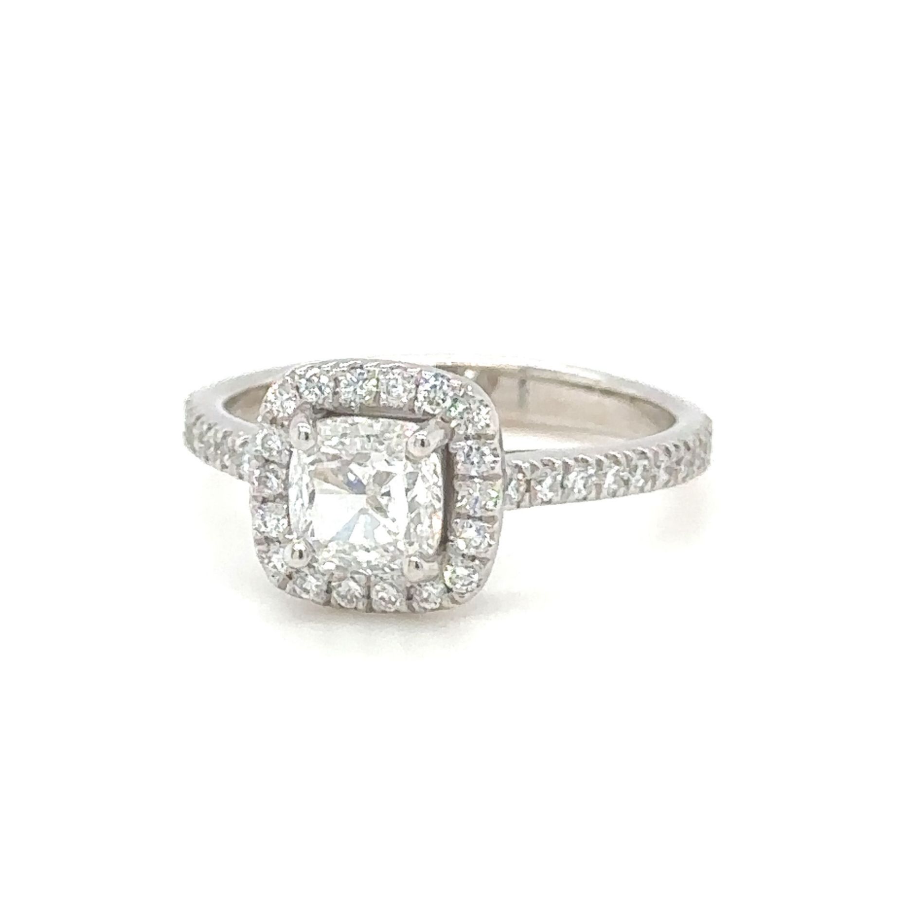 ANELLO IN ORO BIANCO 14K 3.38 GR CON DIAMANTE CENTRALE DA 1.20 CT COLORE G PUREZZA SI1 + BRILLANTI LATERALI PER 0.38CT COLORE D-F PUREZZA VS1-2 - TAGLIA 7 - CERTIFICATO GIA - SFR40301 - COMMISSIONE D’ASTA 25%