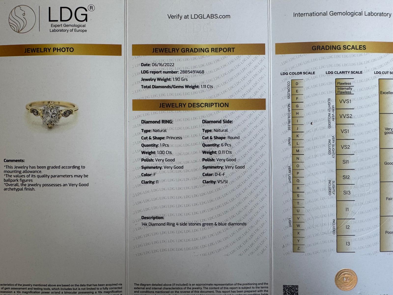 ANELLO IN ORO GIALLO 14K 1,90 GR CON DIAMANTE CENTRALE 1,00 CT COLORE F PUREZZA I1 BRILLANTI E BRILLANTI PER 0,11 CT COLORE D-F PUREZZA VS-S I- TAGLIA 6,5 – DH-R766 - COMMISSIONE D’ASTA 25%