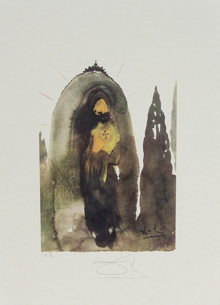 Dalì Salvador Senza titolo litografia su carta, cm. 45x32, es. E.A. firmata in basso a destra, timbro a secco in basso a sinistra, Edición Gaceta Española de Arte Contemporáneo di Madrid senza cornice
