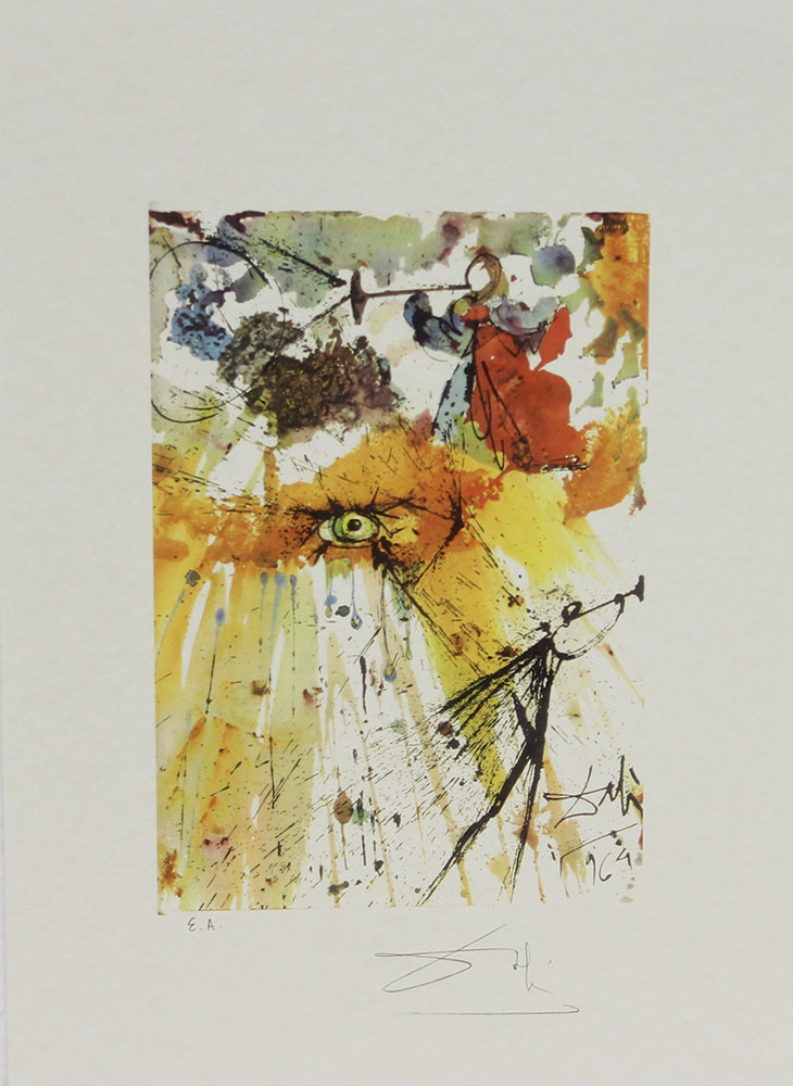Dalì Salvador Senza titolo litografia su carta, cm. 45x32, es. E.A. firmata in basso a destra, timbro a secco in basso a sinistra, Edición Gaceta Española de Arte Contemporáneo di Madrid senza cornice