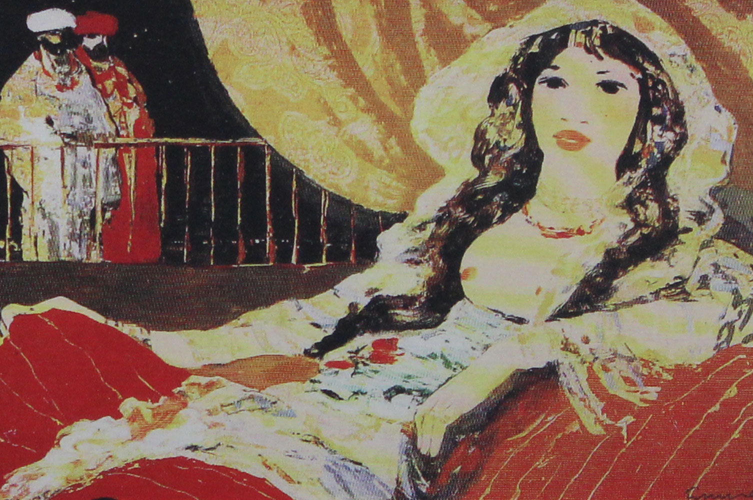 Fiume Salvatore Modella araba stampa cromolitografica su lastra di alluminio, cm. 20x29, es. prova d'autore firmata in lastra in basso a destra
