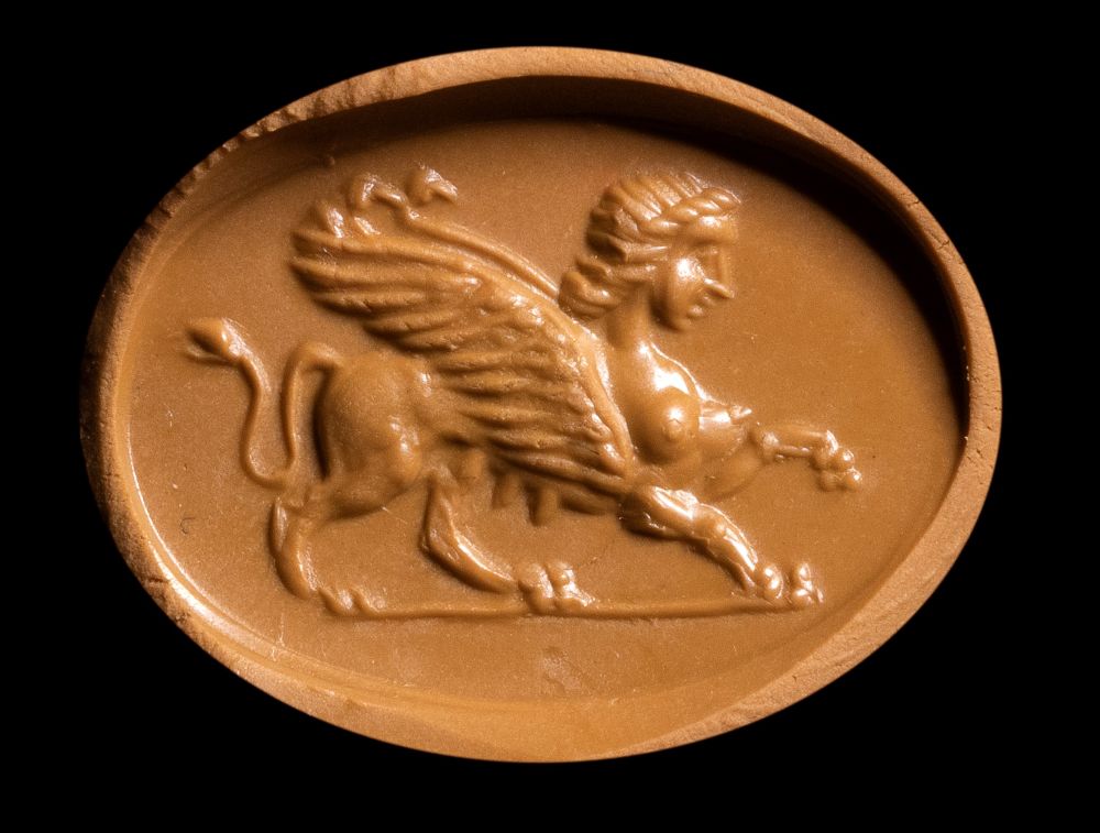 Lotto 24 | A Roman carnelian intaglio. Sphynx.