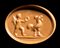 A Roman red jasper intaglio. Winged eros with rooster. The scene shows a winged eros standing left toward a rooster and holding a laurel wreath. Groundline. 1st - 2nd century A.D. 7x10x2 mm