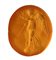 A Roman carnelian intaglio.Nike. A winged Victory rests her foot on the globe, holding a palm branch in her right hand and a laurel wreath in her left, symbols of triumph. Chipping. Wear marks. 1st - 2nd century A.D. 10 x 12 x 2 mm.