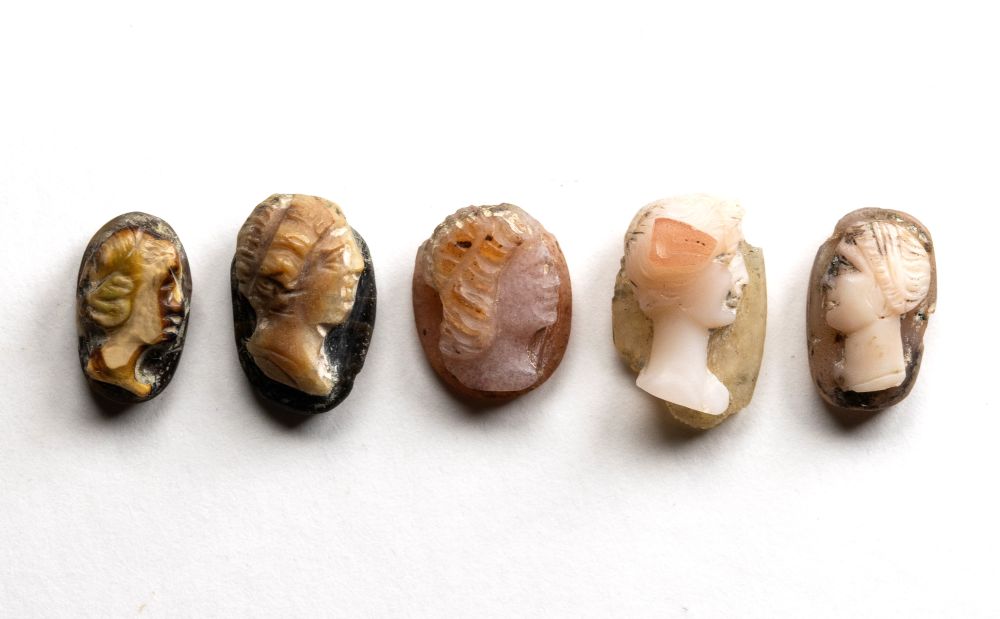 Lot of 5 agate cameos. Female heads in profile. Small chips on the edge and signs of wear. 17th-18th century. min 10x6x4 - max 12,5x8x7 mm