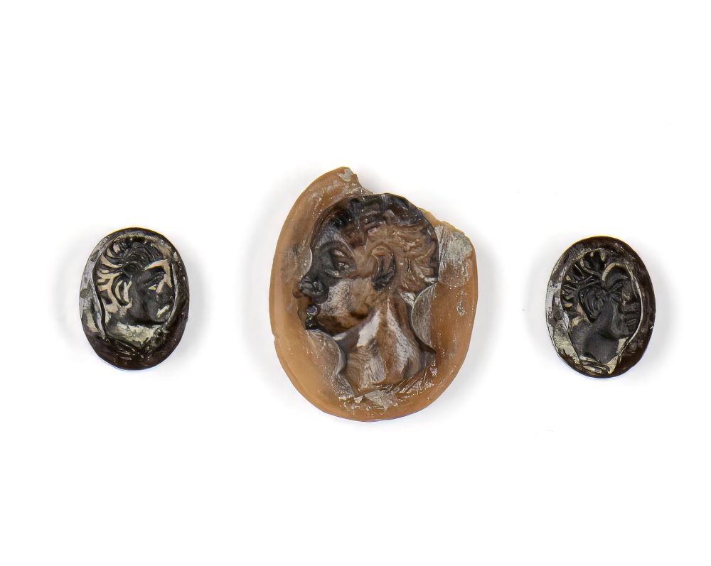 A lot of 3 agate cameos. Moor heads. the cameo in the center is fragmentary, with the profile turned to the left. The other two look to the right. 17th-18th century min 6x5x3 - max 11x9x4 mm