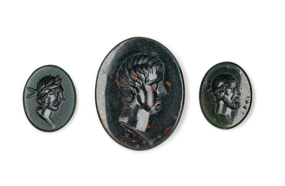 Lotto 125 | Lot of 3 heliotrope intaglios. Various subjects