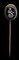 A dark glass paste impression set in a gold stick pin. Hercules as a child killing the snakes