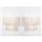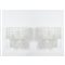 Coppia di lampade da parete a tre luci con struttura in metallo verniciato bianco, diffusore composto da elementi a tronchi in vetro incolore e sovrapposti su due piani.