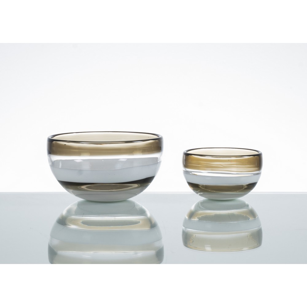 Due coppe “A fasce di colore” talpa e lattimo. Una reca firma incisa Venini Italia.