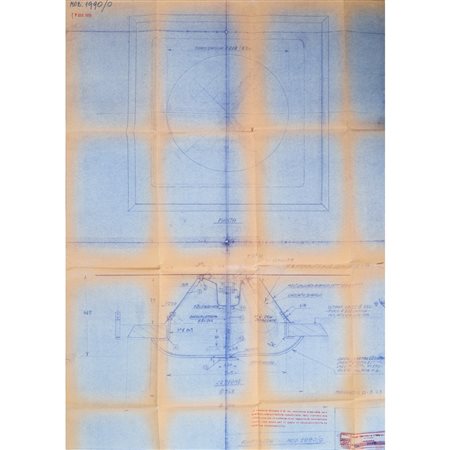 Disegno esecutivo eliografico della lampada modello "1990", timbri.