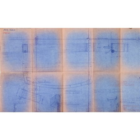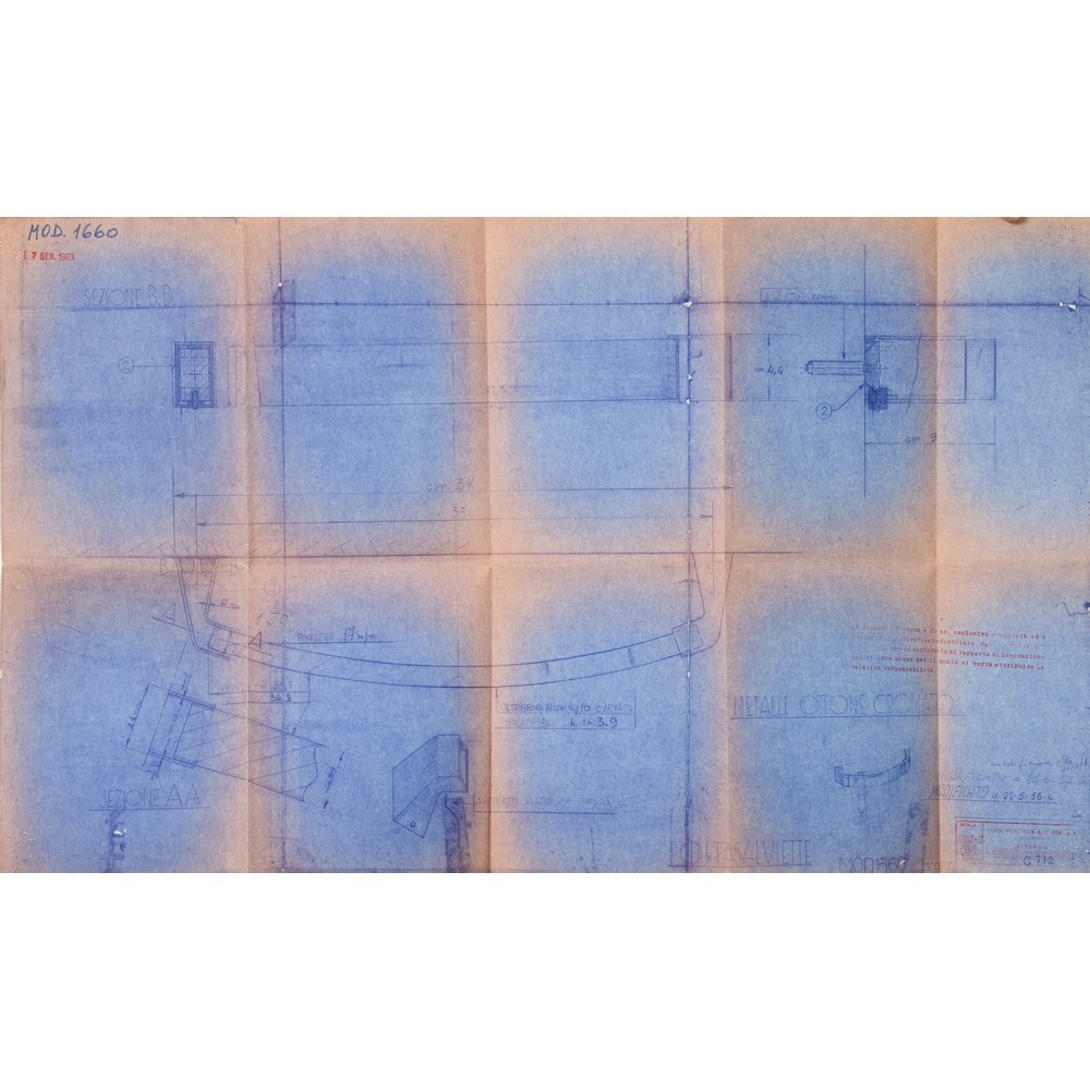 Disegno esecutivo eliografico della lampada modello "1660", timbri.