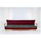 Grande divano con struttura in legno di faggio con braccioli curvi, spalliera e seduta con imbottitura e rivestimento in velluto bordeaux e verde.