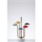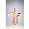 Lampada da tavolo a sei luci, struttura in ottone e metallo verniciato rosso, diffusori a calotta in metallo verniciato uno bianco, uno rosso, uno verde, uno azzurro e uno giallo. Base circolare in marmo bianco di Carrara. Etichetta di produzione.