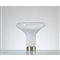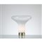 Lampada da tavolo ad una luce con diffusore in vetro lattimo di Murano (produzione Vistosi), base circolare in alluminio spazzolato.