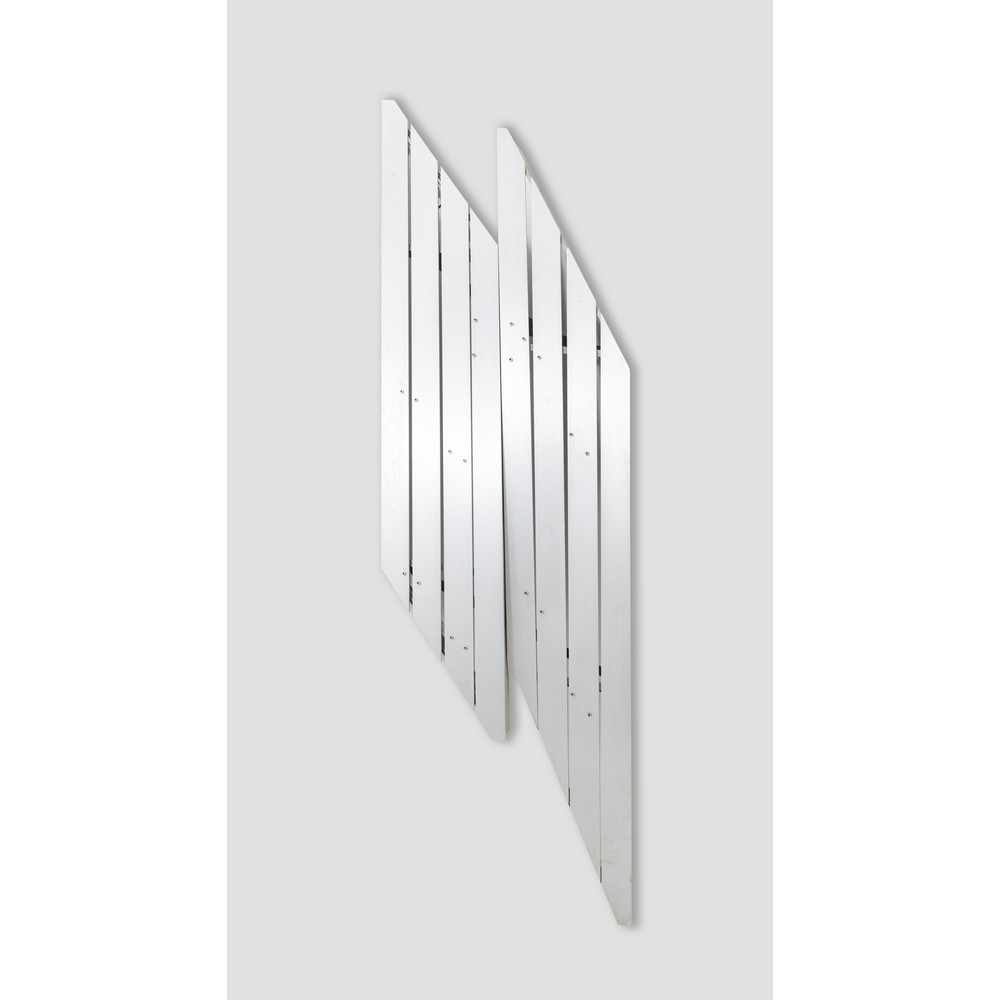 Scultura verticale “Doppia Tensione”, due elementi a rombo in profili di acciaio.