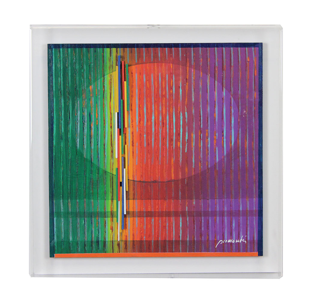 Piemonti Lorenzo Accelerazioni 596, 2014 acrilici e rilievi su Forex entro teca di plexiglass, cm. 34x34 firmato in basso a destra, etichetta Lorenzo Piemonti al retro, certificato di autenticità dell'artista su fotografia