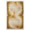 Tappeto rettangolare in lana a campo beige con disegni astratti nei toni del marrone.