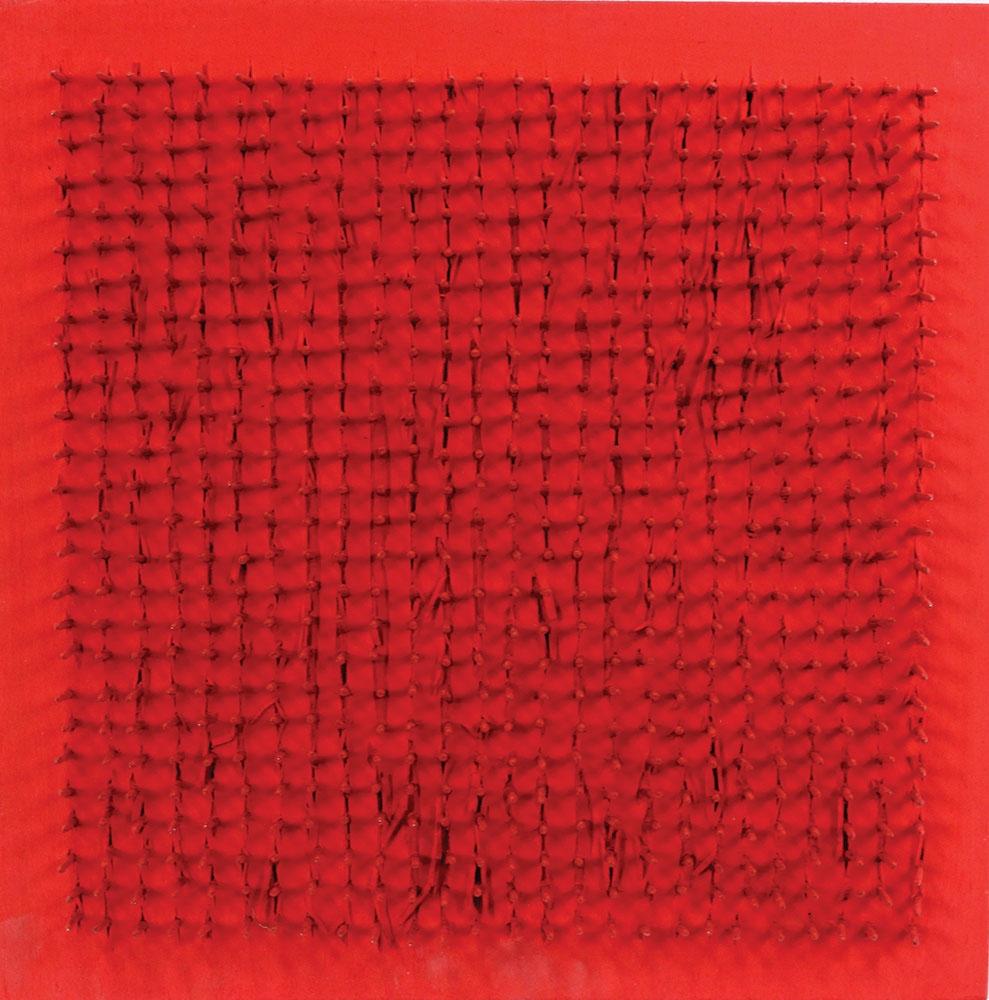 Aubertin Bernard Tableau clous, 1969 acrilico e chiodi su tavola, cm. 30x30...