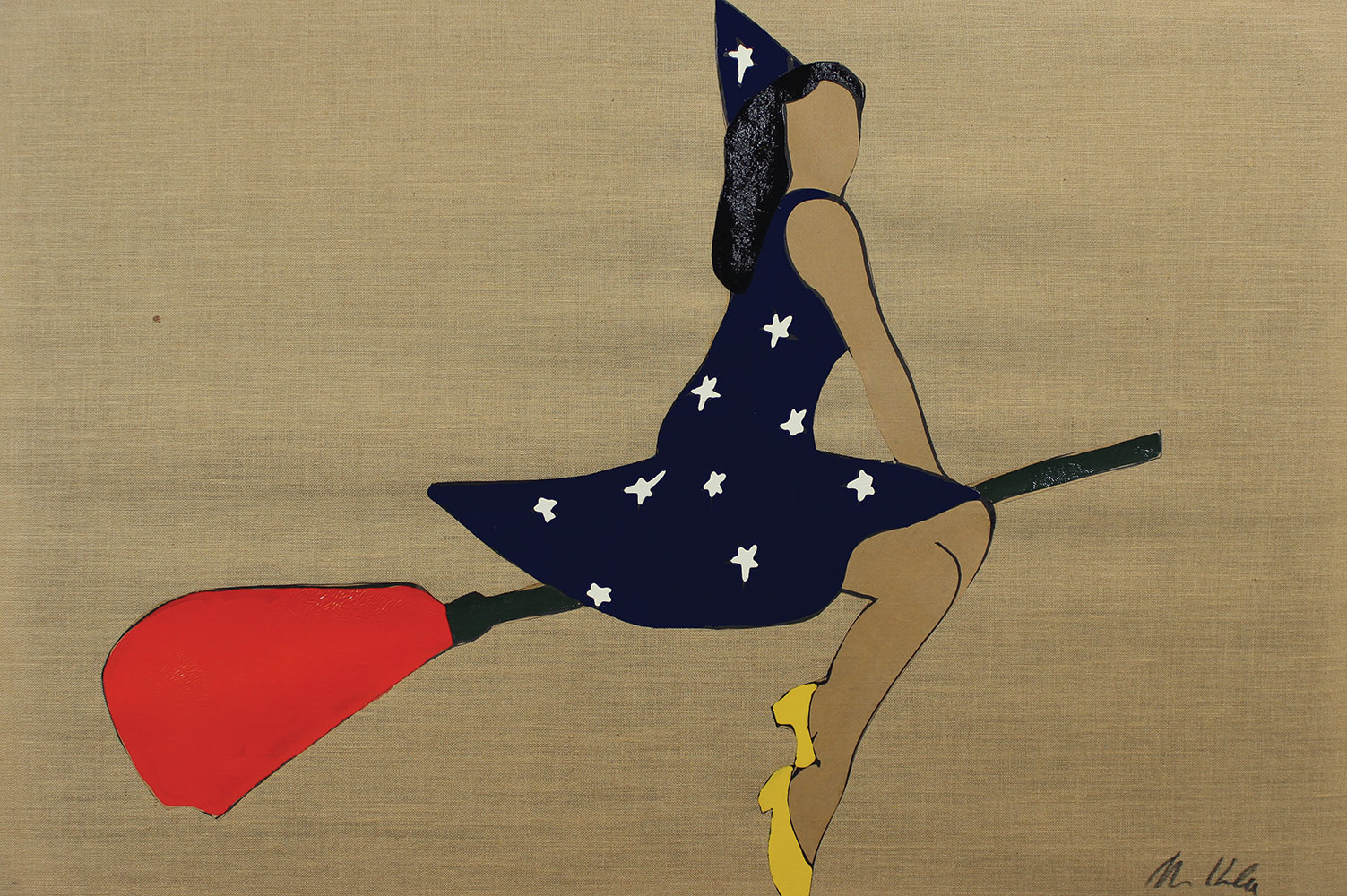 Lodola Marco A spasso con la scopa, (2002) smalti e collage su tela, cm....