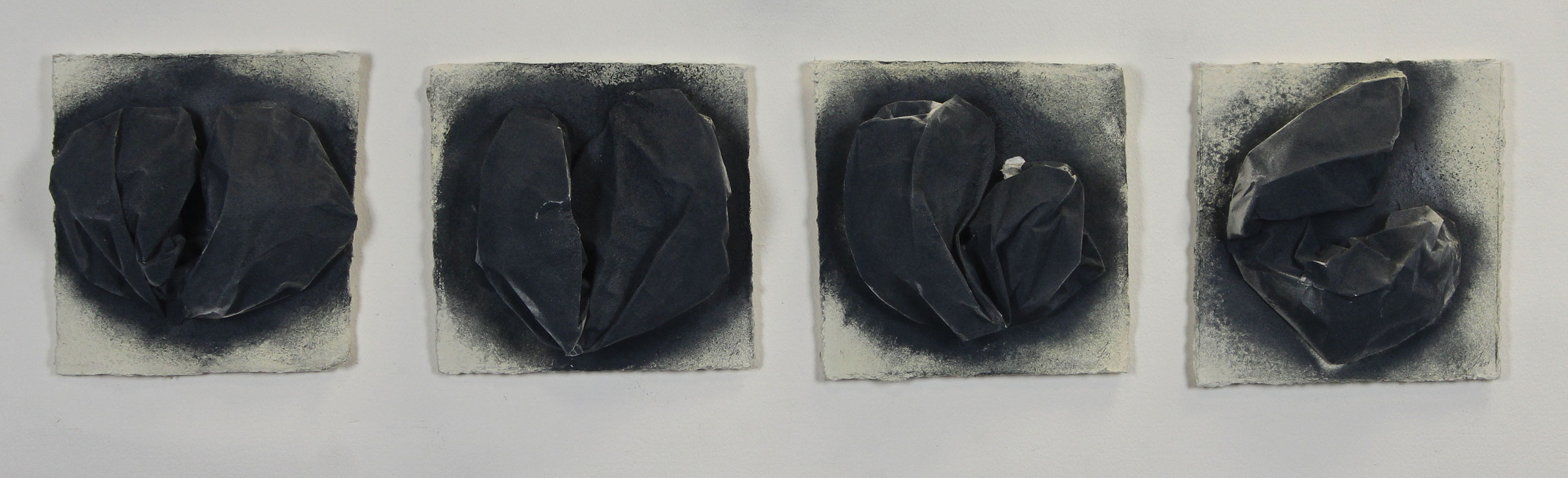 Frigerio Nicoletta Avvolti. Sequenza x 4, 2008 carborundum su carta a mano applicato su carta, cm. 30x94 siglato in basso a destra di ogni singolo elemento, firmato, intitolato e datato al retro senza cornice