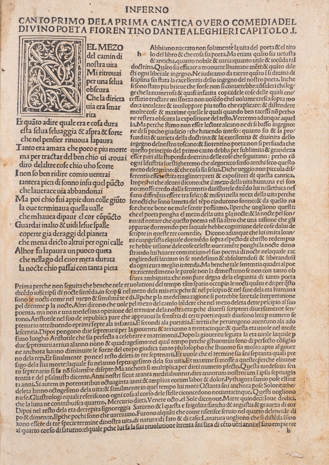 Dante Alighieri (Firenze 1265 - Ravenna 1321) - La Commedia, col commento di Cristoforo Landino., 1484