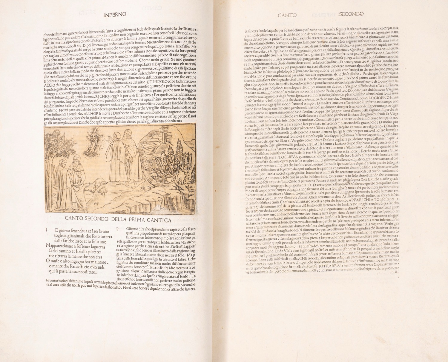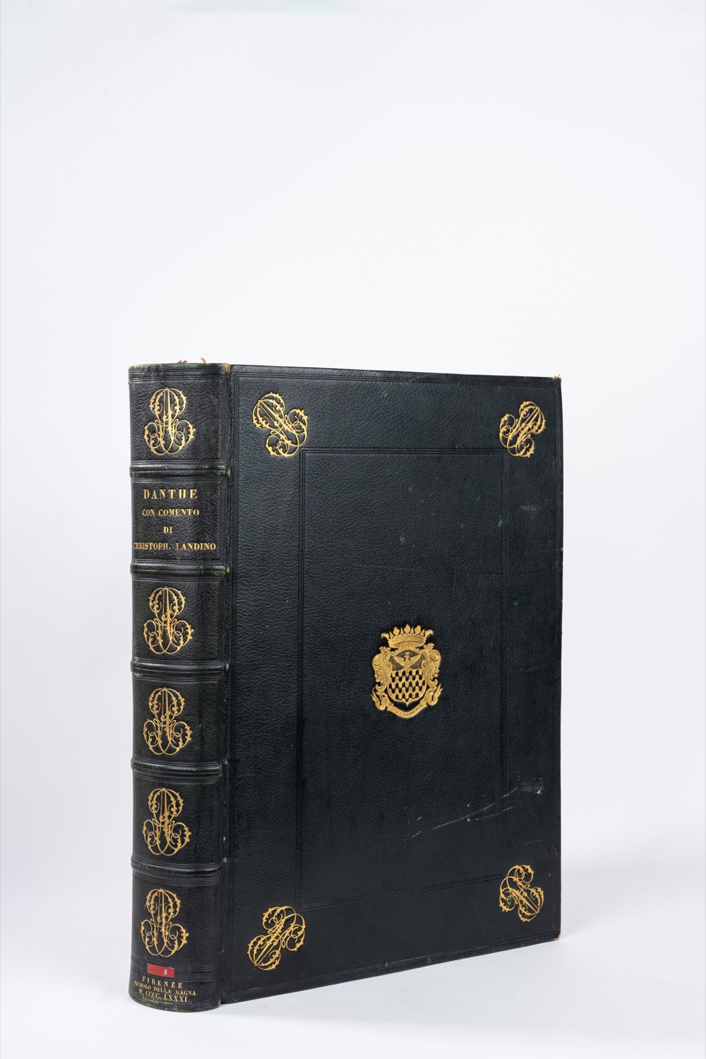 Firenze, Nicolò di Lorenzo dalla Magna, 1481. In 2°. 416 x 285 mm. Due illustrazioni nel testo all’inizio dei canti dell’Inferno, una a carta a1 e l'altra a cata b1, opera di Baccio Baldini su DISEGNI DI BOTTICELLI, primo e ultimo fascicolo con carte più corte forse provenienti da altro esemplare, marginali restauri su alcune carte, SPLENDIDA LEGATURA ALLE ARMI DEL MARCHESE GIROLAMO D'ADDA, firmata Binda (Milano), con decorazioni in oro ai piatti e al dorso, successivamente forse confluita in quella del bibliofilo inglese Charles Fairfax Murray; stemma nobiliare stampato alla prima e ultima carta di WALTER ASHBURNER, Firenze. Firenze, Nicolò di Lorenzo dalla Magna, 1481. In 2°. 416 x 285 mm. Due illustrazioni nel testo all’inizio dei canti dell’Inferno, una a carta a1 e l'altra a cata b1, opera di Baccio Baldini su DISEGNI DI BOTTICELLI, primo e ultimo fascicolo con carte più corte forse provenienti da altro esemplare, marginali restauri su alcune carte, SPLENDIDA LEGATURA ALLE ARMI DEL MARCHESE GIROLAMO D'ADDA, firmata Binda (Milano), con decorazioni in oro ai piatti e al dorso, successivamente forse confluita in quella del bibliofilo inglese Charles Fairfax Murray; stemma nobiliare stampato alla prima e ultima carta di WALTER ASHBURNER, Firenze.