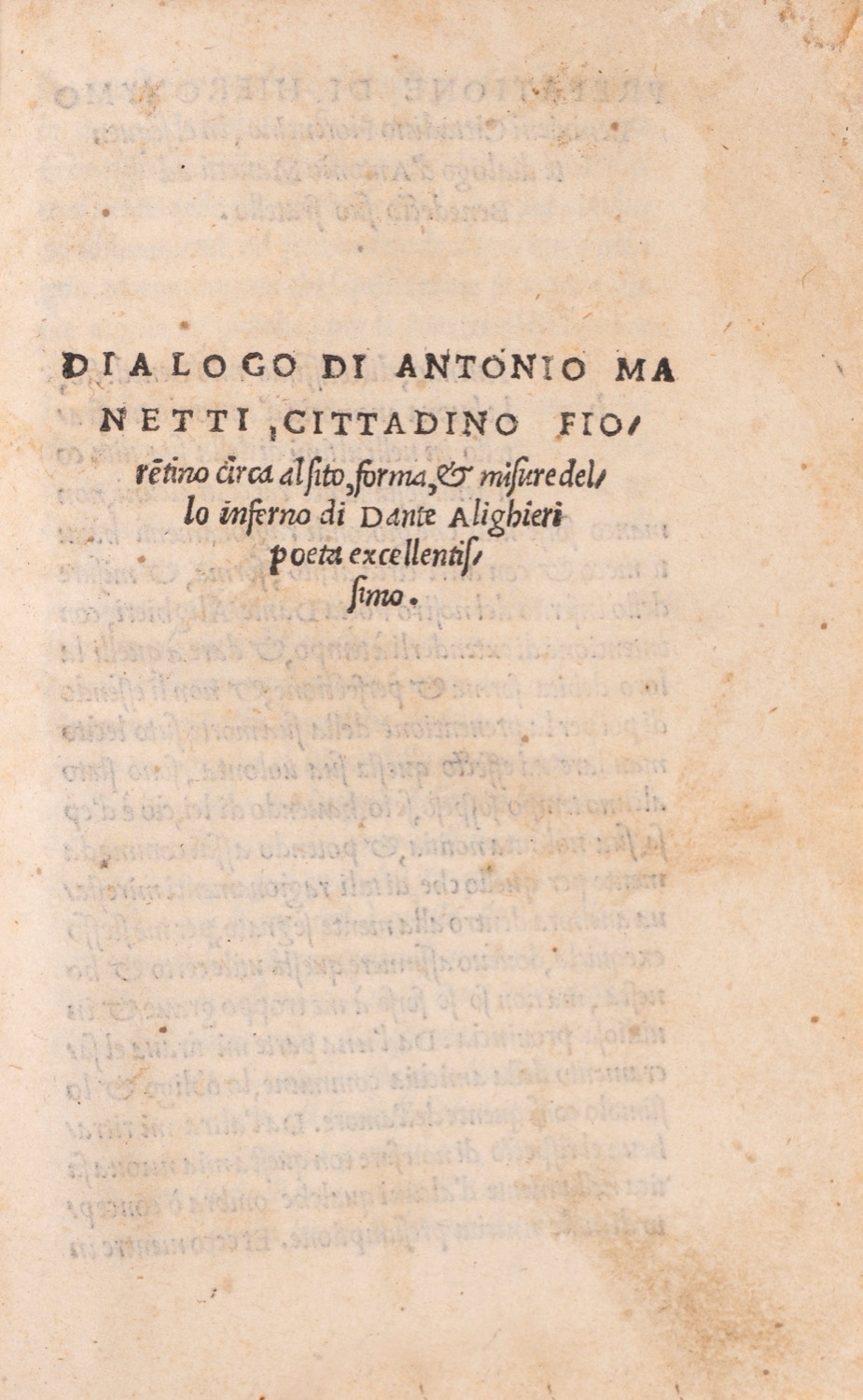Antonio Manetti - Dante Alighieri - Dialogo di Antonio Manetti cittadino fiorentino circa al sito, forma et misure dello inferno di Dante Alighieri poeta excellentissimo, 1522