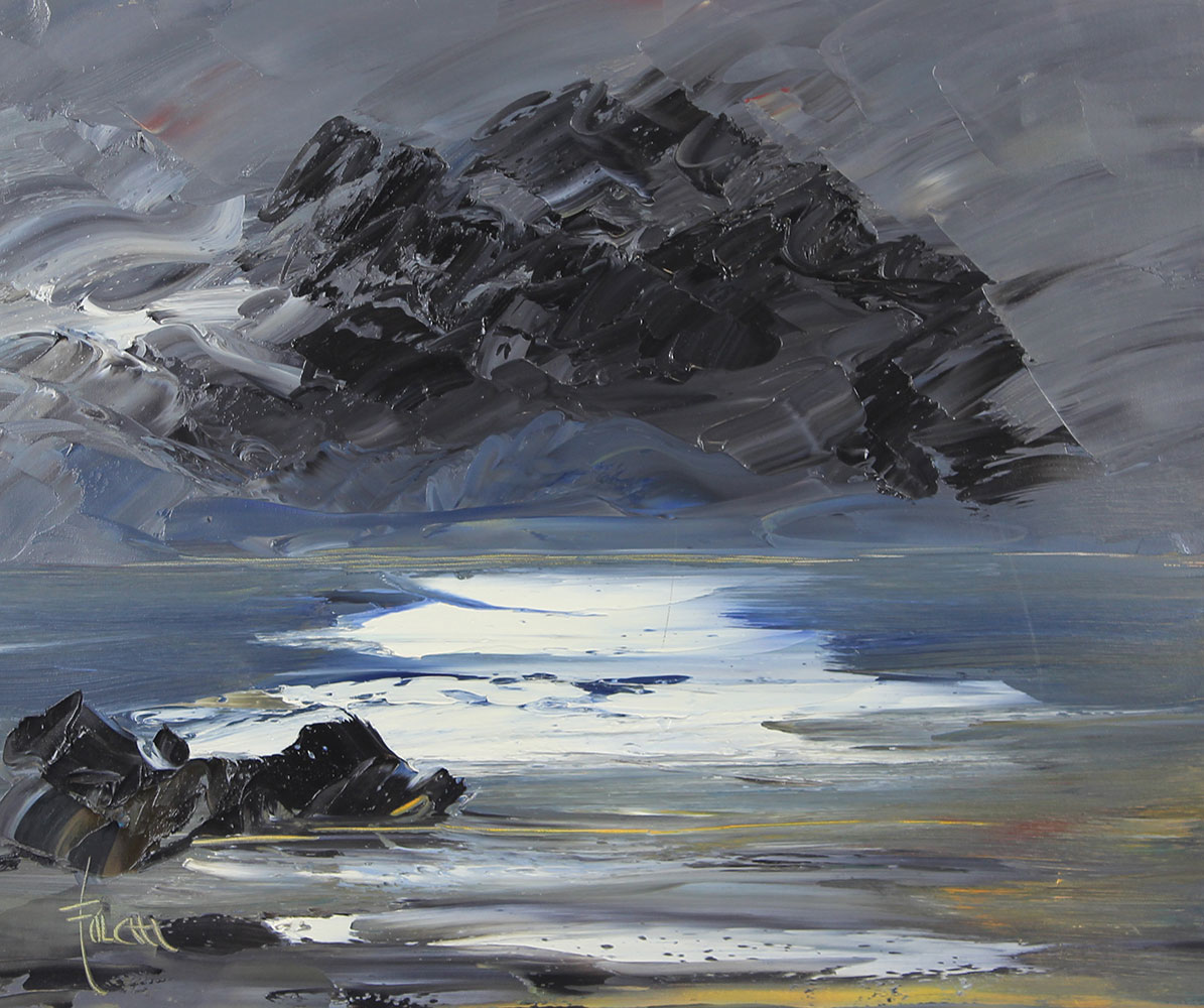 Falchi Mario Notturno con Temporale, 2014 olio su tela, cm. 50x60 firmato in basso a sinistra, firmato, intitolato e datato al retro, certificato di autenticità dell'artista su fotografia