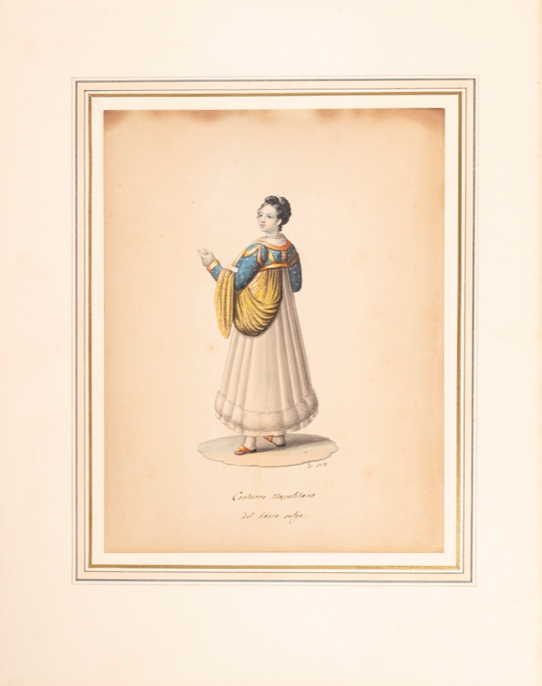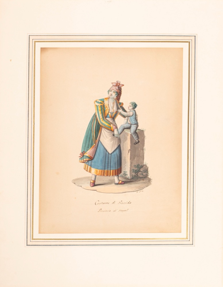 I soggetti rappresentano costumi tradizionali del Regno di Napoli e comprendono: Costume napoletano del borgo di Chiaja, Costume di Sorrento, Provincia di Napoli, Costume napoletano del basso volgo, Costume di Carafagreci, Provincia di Calabria nel Regno di Napoli, Costume di Procida, Provincia di Napoli.
