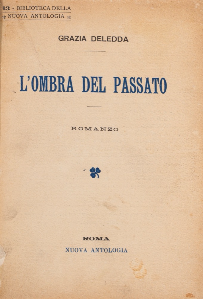 Grazia Deledda, L'Ombra del passato: Roma, Nuova Antologia, 1907. In 8° piccolo. Prima edizione del romanzo. Rilegatura in piena tela con titolo e autore impresso in oro al dorso. Brossura editoriale conservata. Timbri e segni di matita. Esemplare in ottimo stato di conservazione, nessun difetto da segnalare. Romanzo del 1907 della scrittrice Premio Nobel per la Letteratura nel 1926.