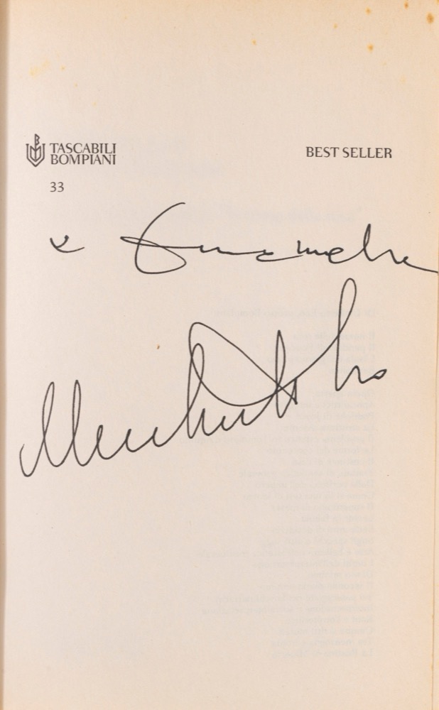 Un'edizione tascabile de Il nome della rosa, edita da Bompiani del 2000, con firma dell'autore;