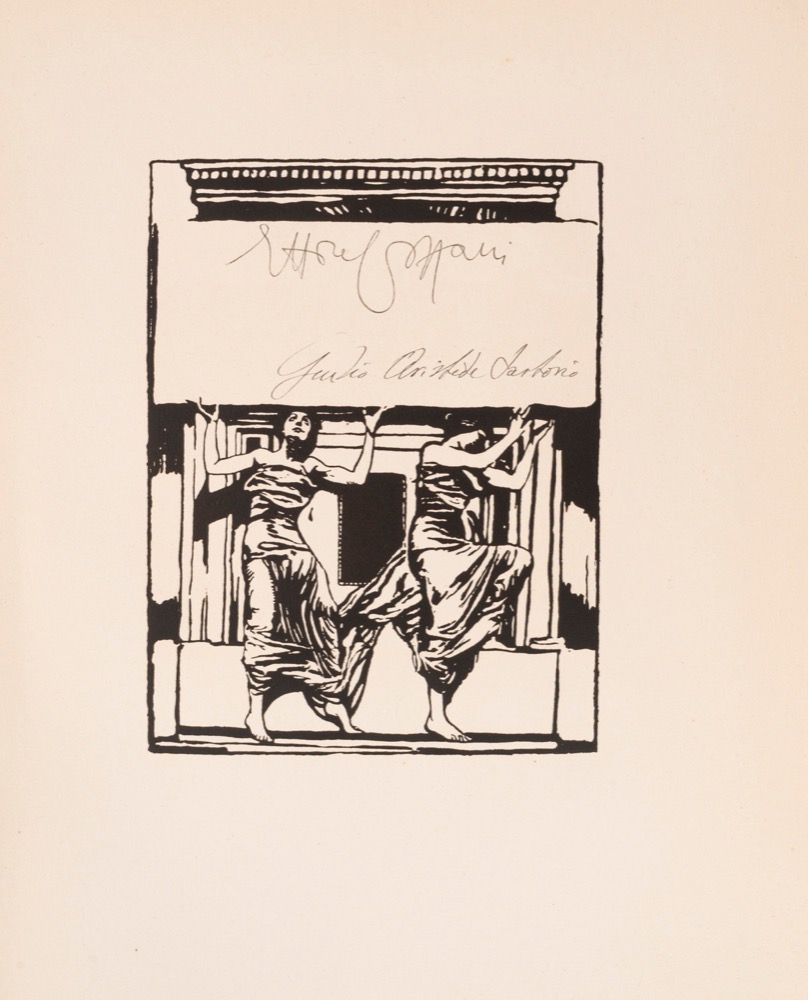 Milano, L'Eroica, 1922. In 4°. Legatura in cartonato con piatti illustrati. Esemplare n. 447 di una tiratura limitata di 1333 copie numerate e firmate dall'editore e dall'autore. Edizione illustrata e fregi tipografici incisi dell'autore. L'opera è corredata di una lettera dattiloscritta dall'editore. Esemplare in ottimo stato di conservazione.