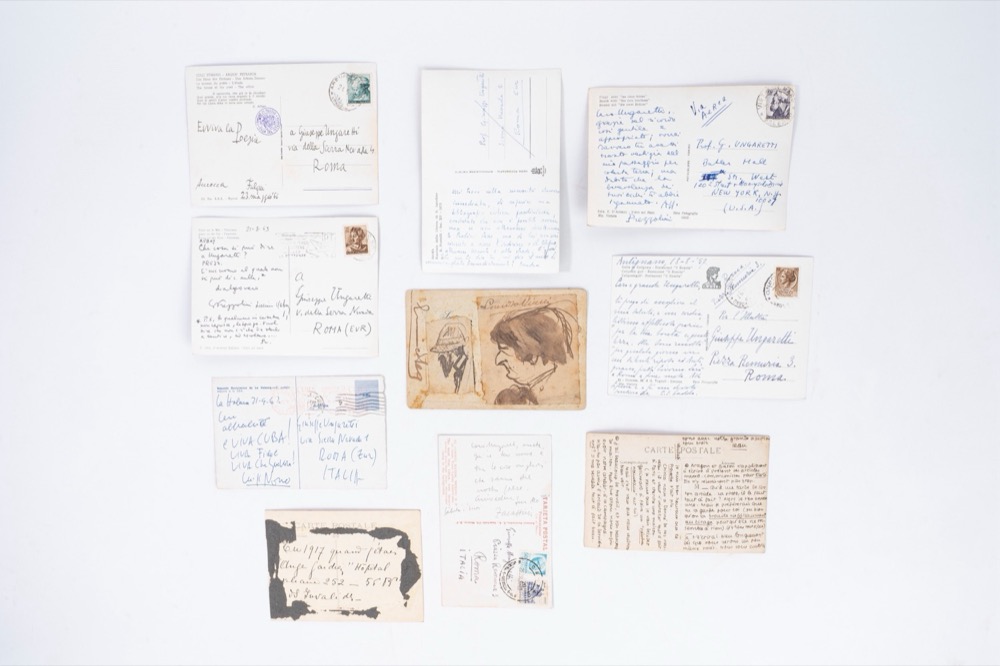 Bell'insieme, sicuramente tutto da studiare. Ampio e corposo insieme di testimonianze di natura più familiare, attestate da oltre 70 telegrammi giunti alla famiglia per la morte del Poeta; tra questi si segnalano, oltre quelli inviati dai principali scrittori ed editori italiani, anche una nutrita schiera di politici di tutto l'arco costituzionale, da Andreotti a Pertini, da Rumor a Fanfani, da Napolitano a Moro. In una scatola si conservano centinaia di cartoline inviate negli anni a Ungaretti, in rari casi da perfetti sconosciuti, nella stragrande maggioranza da tutta l'intellighenzia italiana degli anni '50-'70, con qualche rara eccezione anche antecedente. Tra queste spicca una cartolina postale inviata nel 1911 da Viareggio dal pittore Lorenzo Viani a Ungaretti ad Alessandria d'Egitto, con un delizioso ritratto di profilo del poeta; come belle sono le cartoline di Gadda, Prezzolini, Falqui, Accrocca, Dorazio, Zavattini, Luigi Nono etc. Tre cartoline recano versi e appunti di mano di Ungaretti, come sempre di mano sua è una lunga lettera da San Paolo del 19 ottobre 1954. Del 15 gennaio 1918 è una bella lettera di tre pagine, su carta intestata de Il Tempo, di Papini.