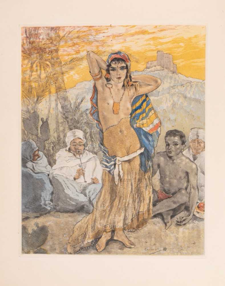 Edité par Chez l'auteur, Paris, 1933. In 8°, 275 x 230 mm. Illustrato da 6 acqueforti opera di Chimot, esemplare n.147/160 tirato su papier de Rives, che include due disegni originali fatti con matite colorate al frontespizio e dopo la prefazione di Vuillermoz, brossura editoriale con difetti.Edité par Chez l'auteur, Paris, 1933. In 8°, 275 x 230 mm. Illustrato da 6 acqueforti opera di Chimot, esemplare n.147/160 tirato su papier de Rives, che include due disegni originali fatti con matite colorate al frontespizio e dopo la prefazione di Vuillermoz, brossura editoriale con difetti.