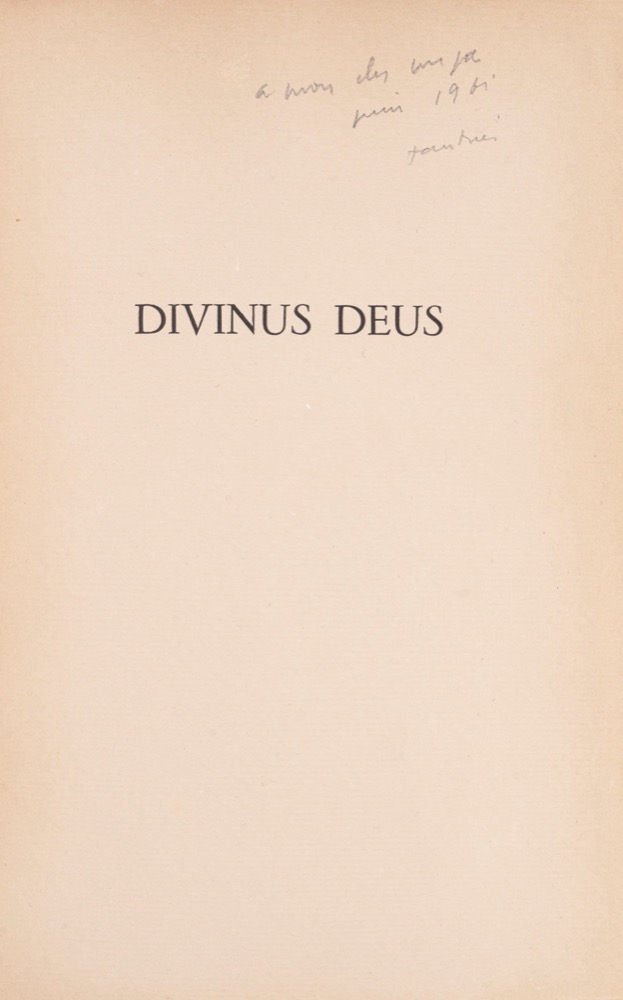 Paris, Le Solitaire, 1942 [Georges Blaizot, 1945]. In 8°, 217 x 145 mm. Brossura editoriale con la sua velina protettiva. Esemplare n.66 su papier de Montval. DEDICA AUTOGRAFA DI FAUTRIER A UNGARETTI "A mon cher Unga...1961". Suite di 13 incisioni fuori testo, e 4 DISEGNI ORIGINALI applicati su cartoncino.Paris, Le Solitaire, 1942 [Georges Blaizot, 1945]. In 8°, 217 x 145 mm. Brossura editoriale con la sua velina protettiva. Esemplare n.66 su papier de Montval. DEDICA AUTOGRAFA DI FAUTRIER A UNGARETTI "A mon cher Unga...1961". Suite di 13 incisioni fuori testo, e 4 DISEGNI ORIGINALI applicati su cartoncino.