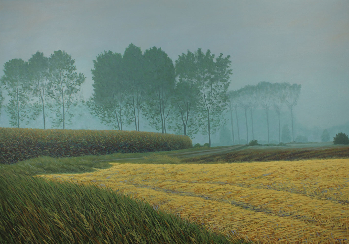 Corrieri Mario Dopo il Raccolto, 1990 acrilico su tela, cm. 150x200 firmato e datato in basso a destra, firmato, intitolato e datato al retro, 2 certificati di autenticità dell'artista su fotografia