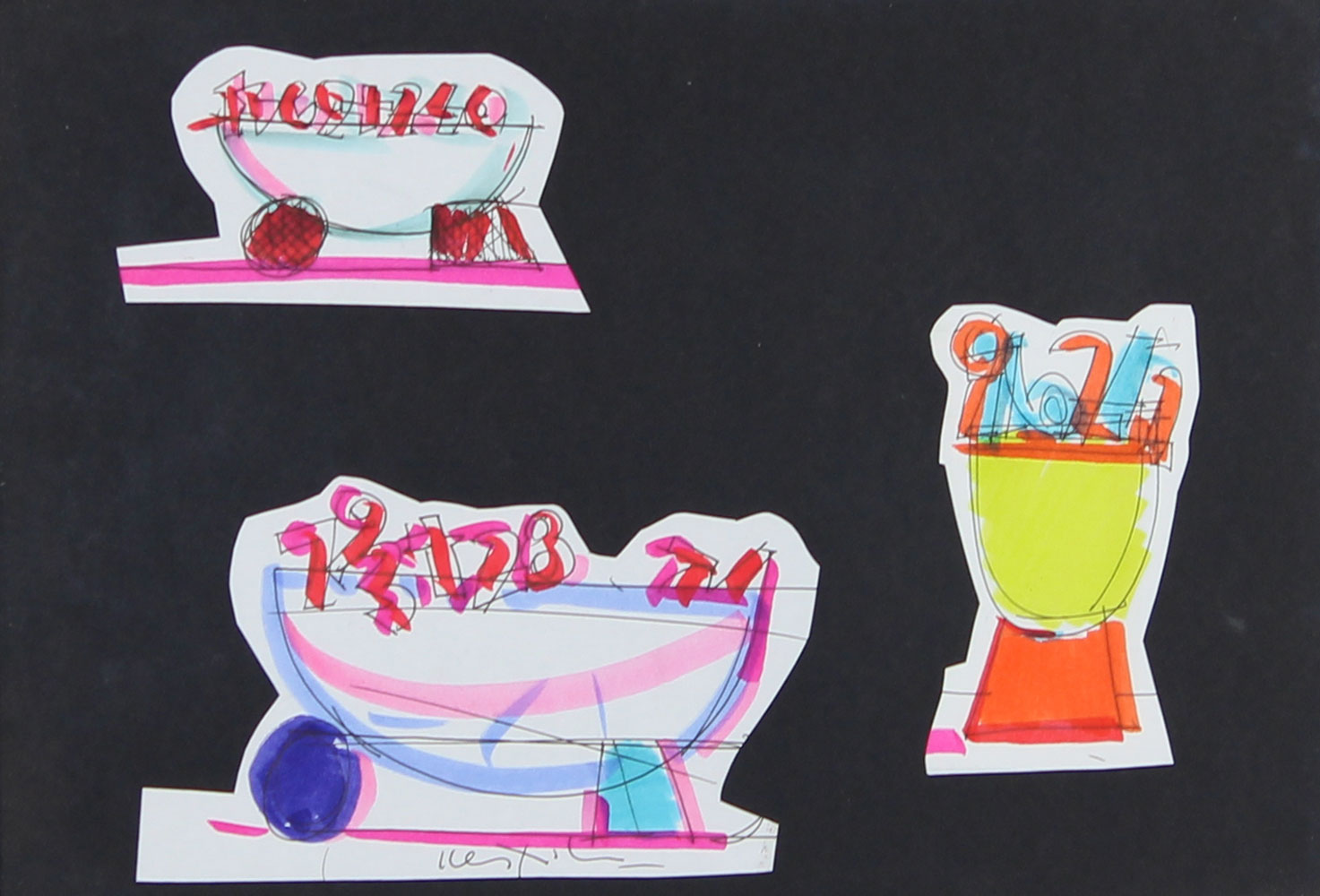 Nespolo Ugo Senza titolo collage di 3 disegni su carta, cm. 30x21 firmato in basso a sinistra su uno dei disegni