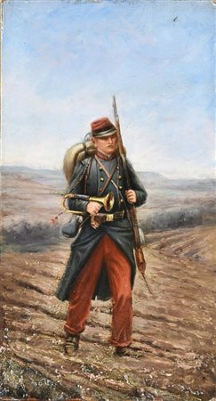 Gerolamo Induno SOLDATO olio su tavoletta, cm 23x12,2 sul retro: cartiglio...