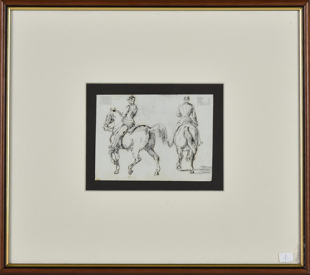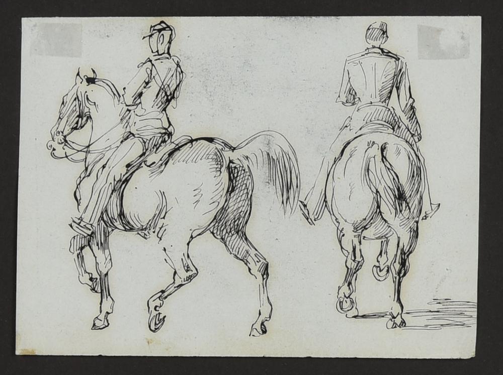 Emilio Lapi BOZZETTO CON COPPIA DI CAVALIERI china nera su carta, cm 9,6x13