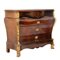 Cassettone Isabellino a cinque cassetti in legno esotico e mogano, tarsie in bosso con fregi e piedi dorati ad oro zecchino.