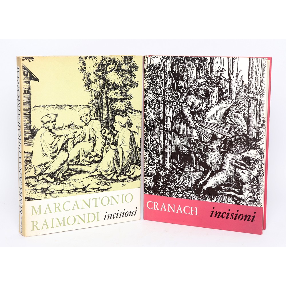 DUE VOLUMI D’ARTE: 1) Fritz Baumgart LUCAS CRANACH INCISIONI, ed. La Nuova Italia, Firenze 1970. Formato in folio. Legatura editoriale con sopracoperta editoriale illustrata. In ottime condizioni. Pp. 24 con 75 tavole f. t. 2) De Witt Antony MARCANTONIO RAIMONDI. INCISIONI, ed. La Nuova Italia, 1968. Formato in folio. Legatura editoriale cartonata con sovracoperta figurata. In ottime condizioni. Pp.12 con 74 tavole di cui 7 ripiegate.