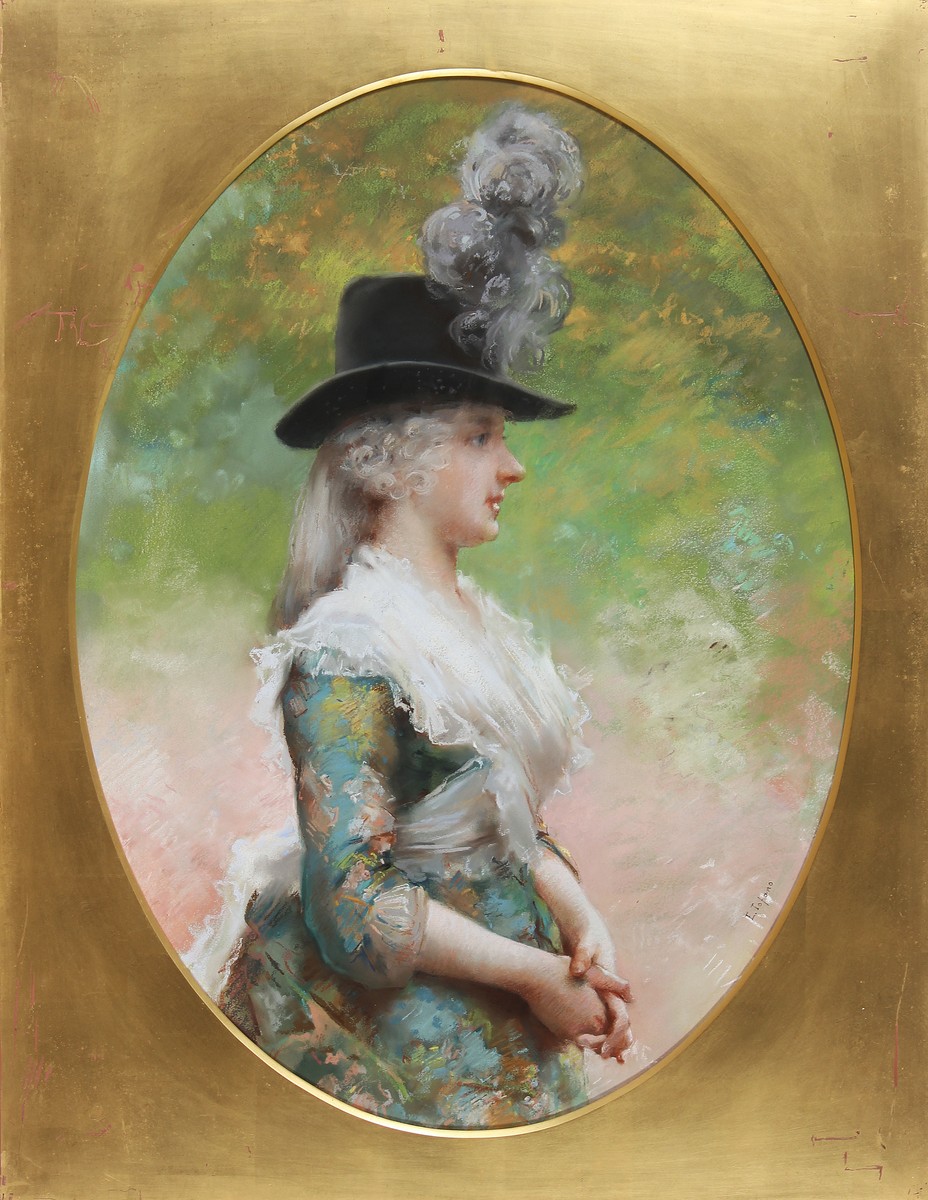 TOFANO EDOARDO (1838 - 1920) Ritratto di Signora con cappello. Pastello su...