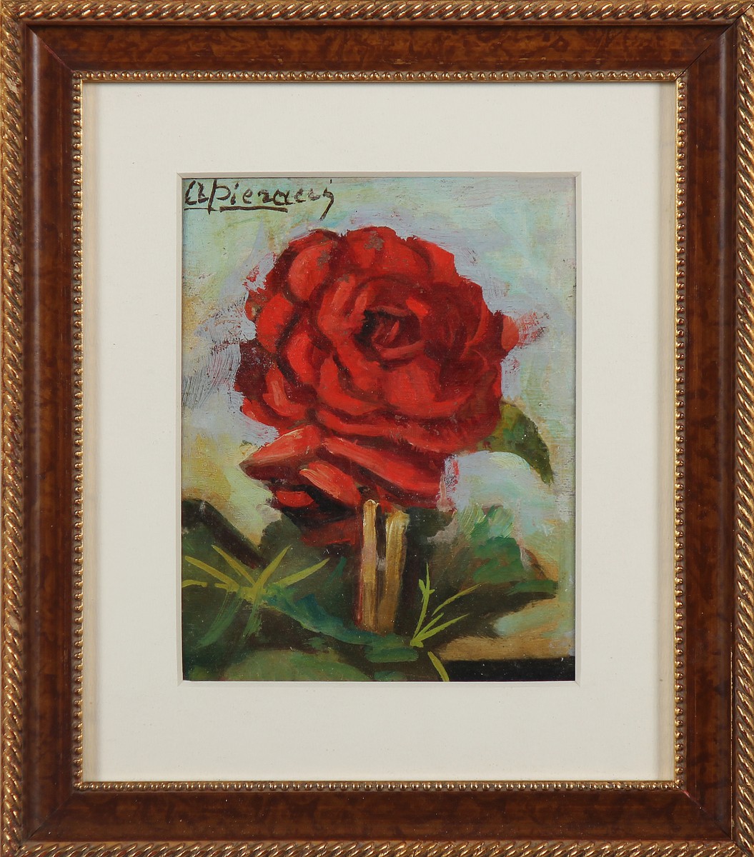 PIERACCI ALFREDO (1877 - 1970) Rosa rosso. Olio su tavola. Cm 15,00 x 20,00. Firma in alto a sinistra. Cornice presente