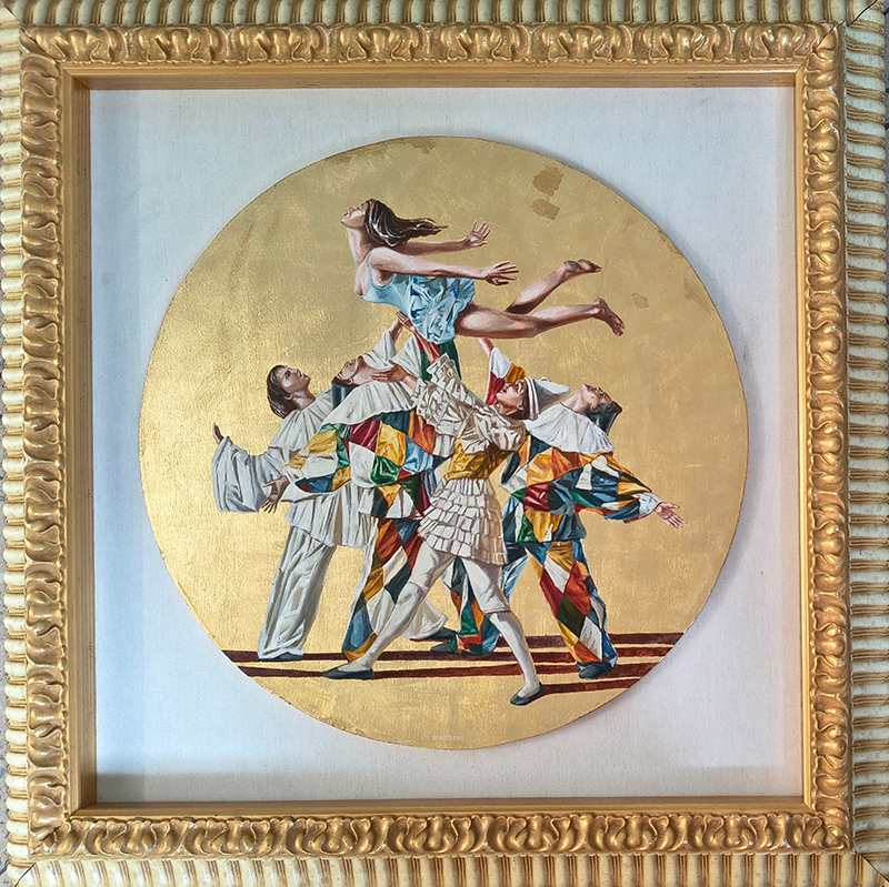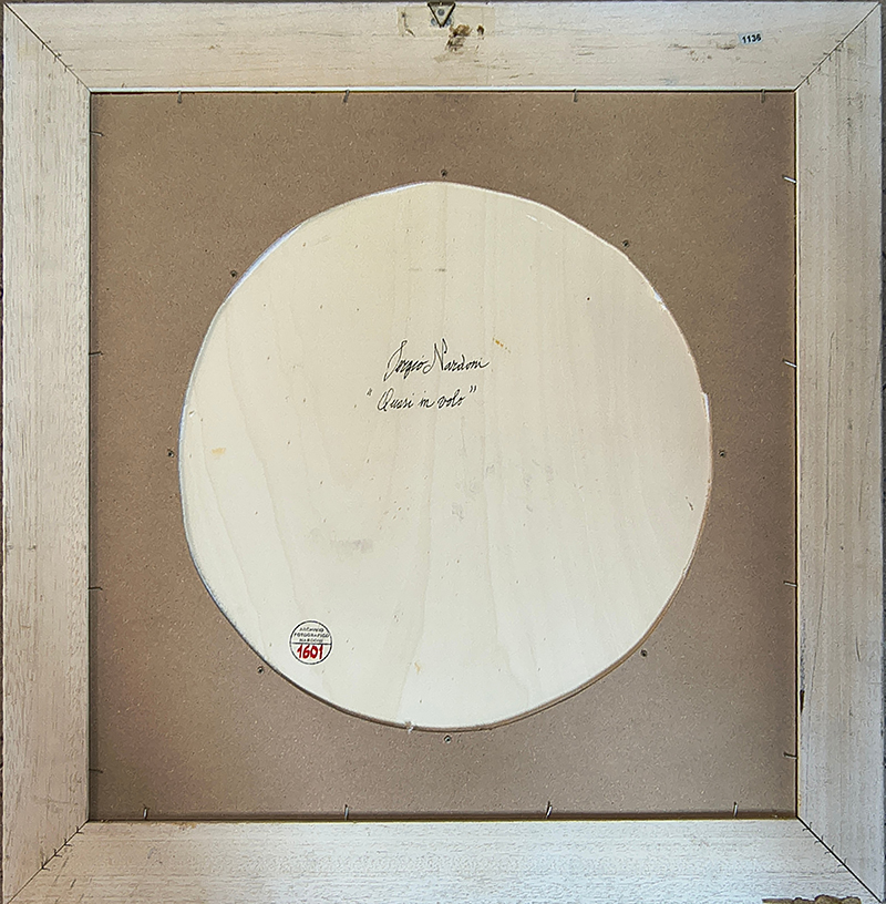 Olio su foglia d'oro su tavola tonda diam. 50cm con la cornice dim. 75cm x 75cm