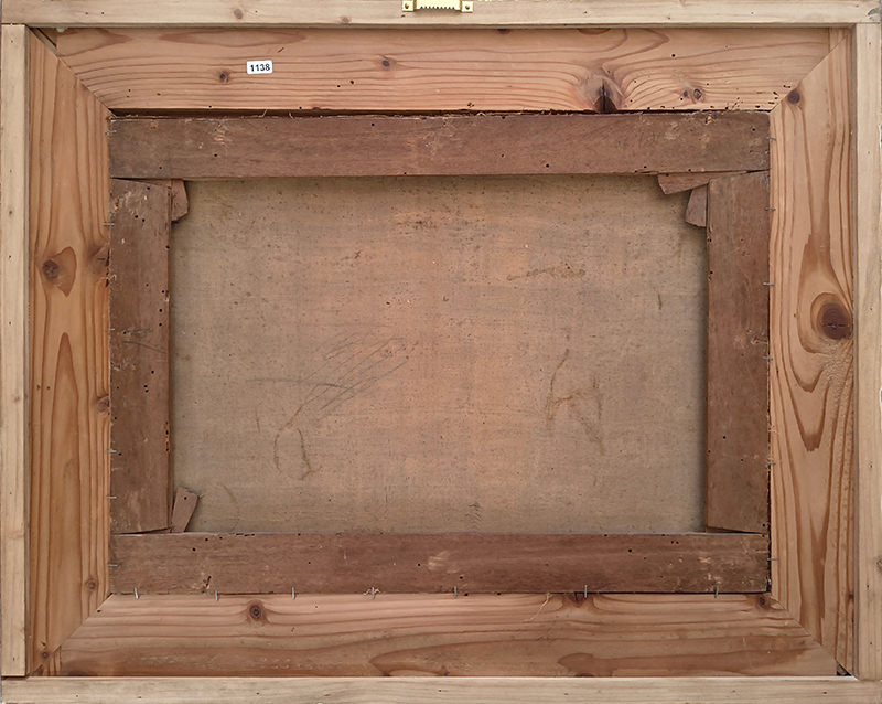 Frammenti di firma fronte opera (come da indagini diagnostche fotografiche ai raggi ultravioletti eseguite da Giuseppe e Luciano Malcangi) - Autentica ed analisi del dipinto a cura del Dott. Andrea De Liberis
